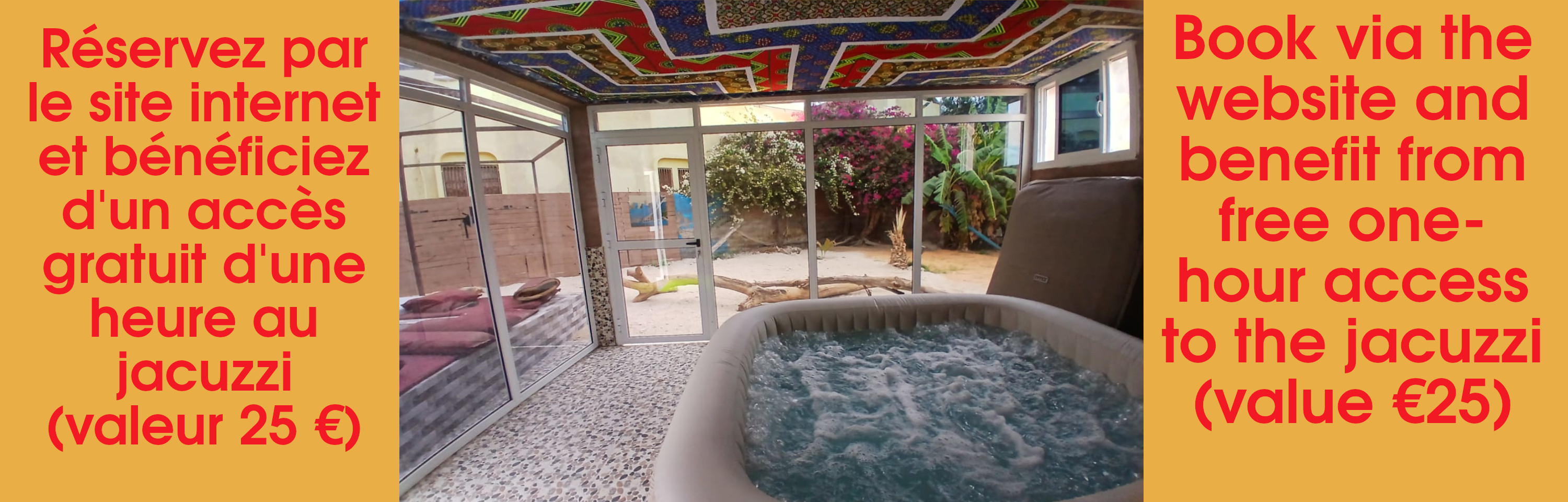 Nous proposons des tentes mauritaniennes authentiques sur le toit, dans "Le Village".